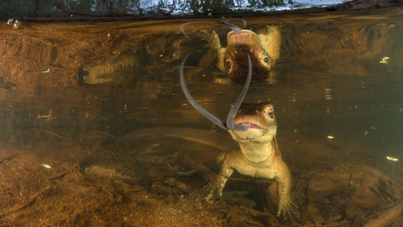 Con thằn lằn ở sông Adelaide và hình ảnh phản chiếu của nó – Ảnh: ETIENNE LITTLEFAIR