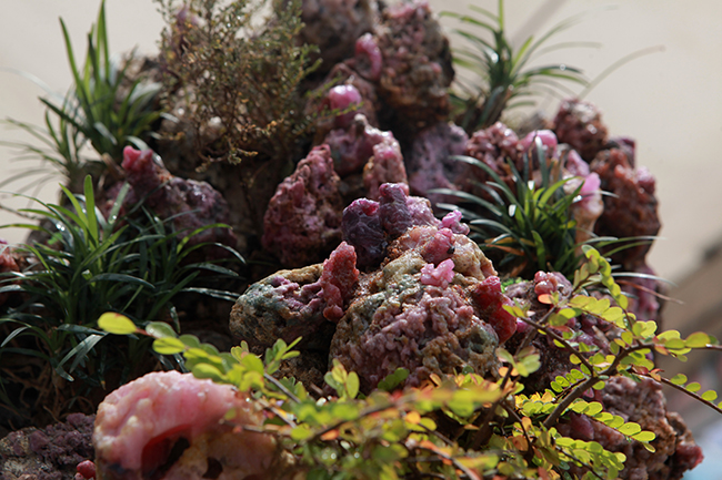 Những cây cỏ được lựa chọn kỹ lưỡng trước khi gắn, gắn chỗ nào phù hợp để khoe được màu đỏ của đá ruby