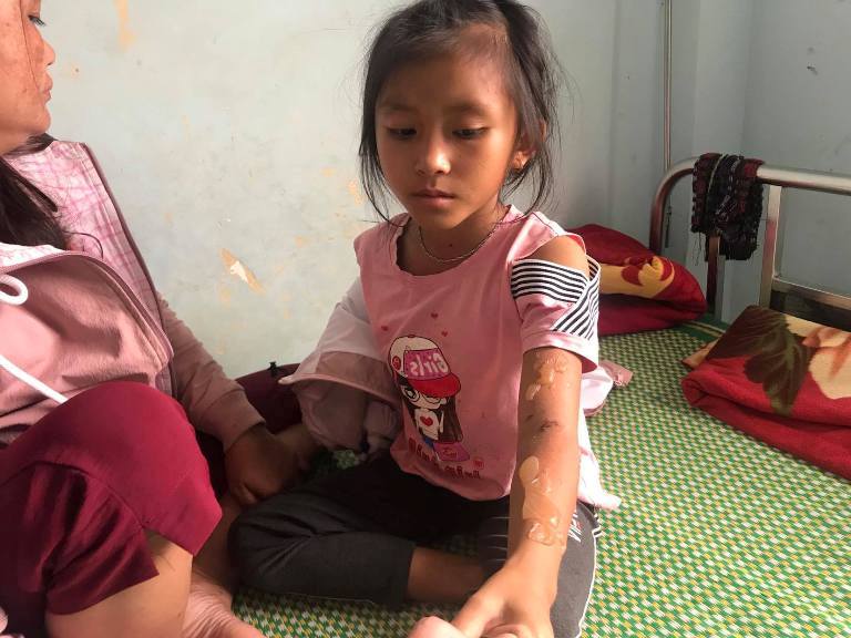 Những vết bỏng rát trên tay bé B.H sau khi đi bắt bọ 3 sọc về bán