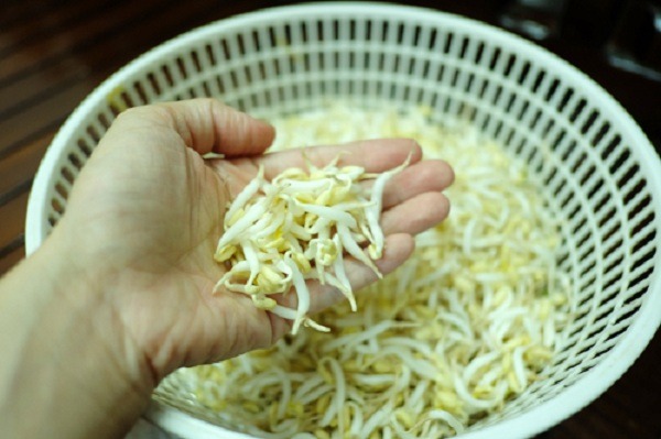 Mỗi ngày 2 lần, nhúng cả rổ vào chậu nước khoảng 5 phút rồi vớt ra để ráo nước rồi lại đặt vào chỗ tối. Sau khoảng 2-3 ngày là bạn có thể thu hoạch một mẻ giá đỗ an toàn.