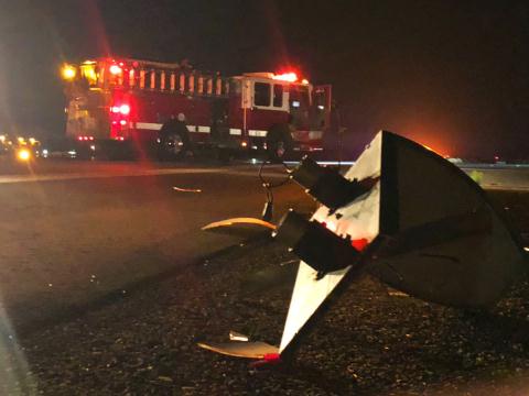 Những mảnh vỡ của C-130A trên đường băng. Ảnh: Twitter Đơn vị Phòng cháy chữa cháy quận Santa Barbara