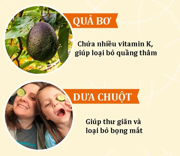 Thiếu vitamin K gây nên quầng thâm, bọng mắt. Bạn có thể thái lát bơ đắp bên dưới bọng mắt để làm giảm triệu chứng và tích cực ăn bơ mỗi ngày.