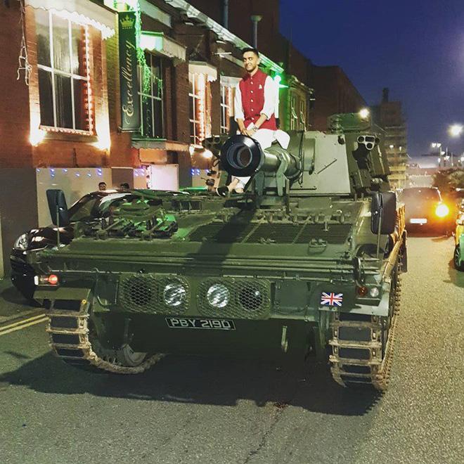 Một đám cưới diễn ra ở Anh khiến dư luận vô cùng chú ý bởi chú rể "cưỡi" xe tăng đi rước dâu. Hành động chơi trội này đang nhận được nhiều ý kiến trái chiều từ phía dư luận. Dưới đây là 1 số hình ảnh đáng chú ý. Theo RT, đám cưới đặc biệt trên diễn ra chiều thứ Ba, 27/8, tại trung tâm sự kiện Excellency Center (Bolton, Anh).