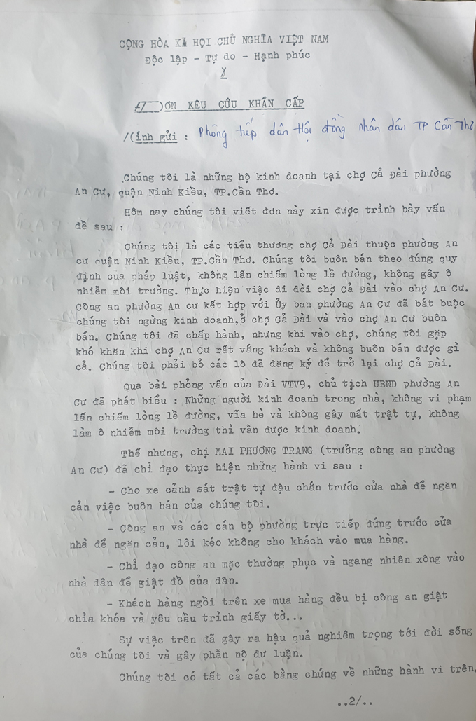 Đơn kêu cứu của tiểu thương.