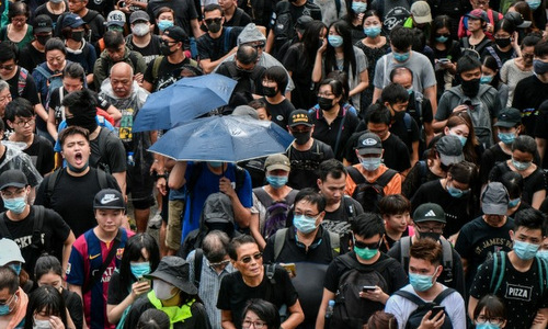 Người biểu tình Hong Kong xuống đường hôm 31/8. Ảnh: AFP.