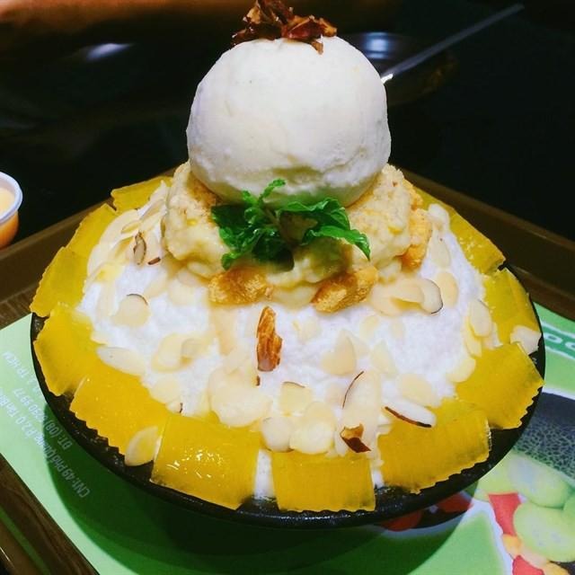 Bingsu sầu riêng: Vào những ngày thời tiết oi bức, tô bingsu với lớp đá bào sữa mềm mịn, cao đầy như ngọn núi tuyết, rồi nay còn được đắp thêm cái vị beo béo của từng lớp thịt sầu riêng thơm ngon. Sầu riêng được tách từng miếng nhỏ xếp trải đầy che phủ phần đá phía dưới. Chưa hết, bên trên còn hào phóng cho thêm viên kem mát lạnh ăn kèm. Trong các quán bingsu ở Sài Gòn thì tiên phong trong sự sáng tạo này là Snow Bings trên đường Trần Hưng Đạo, tô to ụ ở đây được bán với giá 160k, tầm ba người ăn còn không thì bạn hãy đến Coco Kem với phần ăn nhỏ hơn và mức giá cũng khá dễ chịu tầm 80 nghìn mỗi phần thôi.