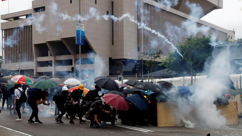Người biểu tình dưới khói mù đạn hơi cay của cảnh sát Hồng Kông ngày 31/08/2019. REUTERS/Kai Pfaffenbach