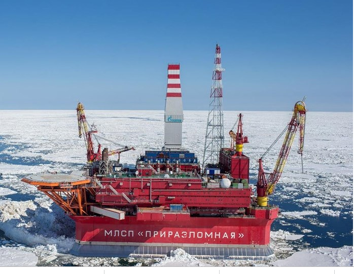 Chiến lược Bắc Cực của Mỹ là một trong những trọng tâm trong chuyến công du châu Âu của Phó Tổng thống Mike Pence. Trong ảnh: Tàu khai thác dầu của Nga ngoài khơi Bắc Cực. Nguồn: Gazprom