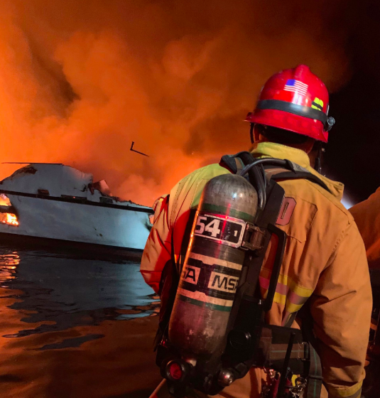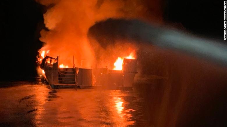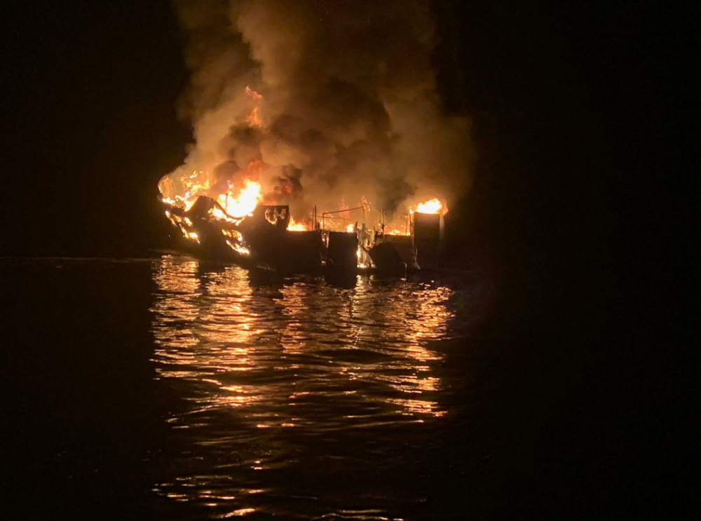 Một số hình ảnh ghi lại tại hiện trường cho thấy con tàu chìm trong biển lửa. Nhiều tàu tuần tra, xuồng cao tốc và trực thăng được điều động tới để hỗ trợ nhưng công tác cứu trợ gặp rất nhiều khó khăn vì sương mù dày dặc dọc bờ biển Nam California.