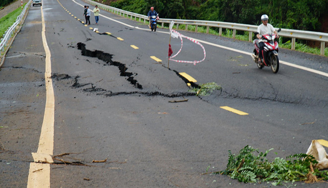 Đường Hồ Chí Minh ở đoạn tuyến tránh Chư Sê qua tỉnh Gia Lai vừa mới hoàn thành không lâu đã bị nứt toác sau vài trận mưa. Chủ đầu tư đang tìm nguyên nhân dẫn đến sự việc này.