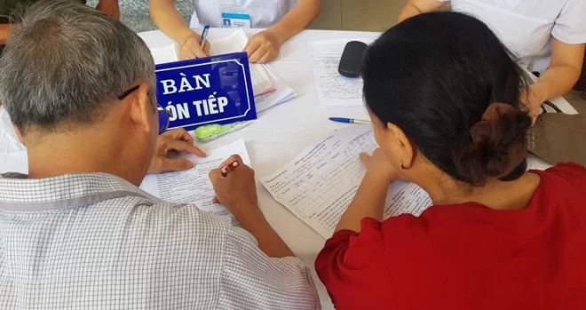 Người dân điền vào phiếu khám sức khỏe, các mục kiểm tra do bác sĩ chỉ định khi khám lâm sàng. Ảnh: Thế Quỳnh.