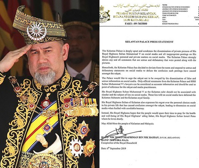 Trước những chia sẻ công khai của người đẹp Nga về chuyện riêng tư của cựu vương, Hoàng gia Malaysia đã chính thức lên tiếng thay mặt cho ông Muhammad V.