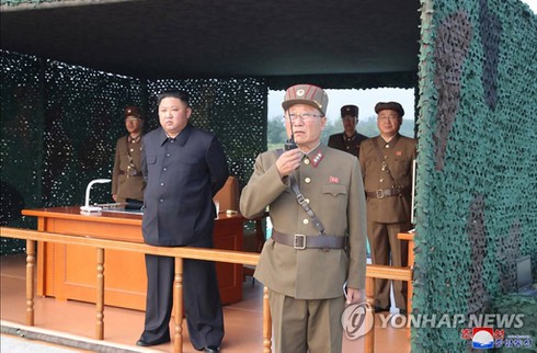 Chủ tịch Triều Tiên Kim Jong-un giám sát vụ thử vũ khí hôm 10/9. Ảnh: KCNA/ Yonhap