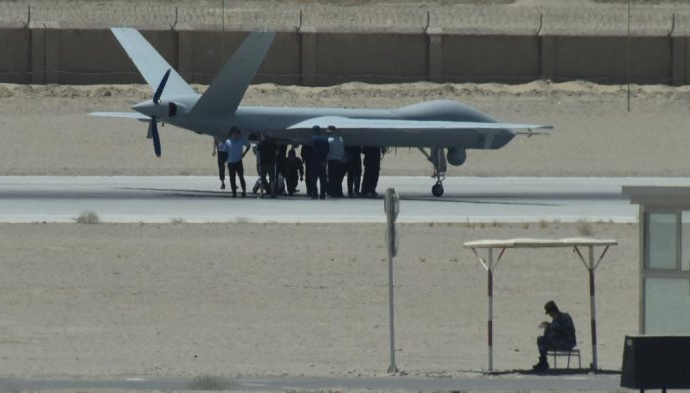 Ảnh chụp ngày 30/05/2019 cho thấy chiếc máy bay không người lái trên đường băng sân bay Hòa Điền (Hotan), Tân Cương.