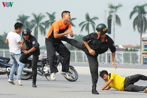 Tại buổi diễn tập thực binh, Trung tướng Đoàn Duy Khương, Giám đốc Công an TP Hà Nội cho biết, trong thời gian qua, tình trạng tụ tập đông người, tuần hành, biểu tình trái pháp luật trên địa bàn TP Hà Nội nói riêng, cả nước nói chung diễn biến phức tạp cả về quy mô và tính chất.