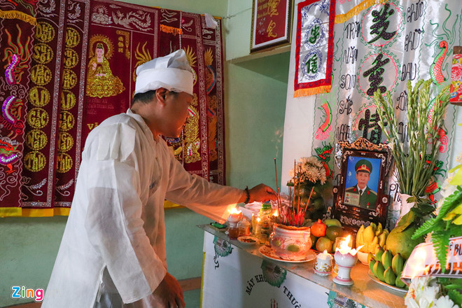 Nhìn di ảnh, anh Bình vẫn thắc mắc cái chết đường đột của cha. "Khoảng 8h tối 7/9, cha tôi đang họp quân dân chính thì nghe gọi điện về việc có đánh nhau ở khuôn viên trung tâm y tế. Khi cha tôi chạy về thì thấy Thuận đang đánh vợ nên vào can ngăn. Sau khi quay lưng đi, cha tôi bị thanh niên này đâm hai nhát từ phía sau. Ông chạy vào phòng cấp cứu và gục tại đó", anh Bình nhớ lại.