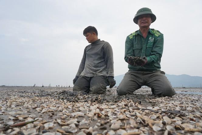 Ngao chết chất đống, người nuôi bòn mót từng con còn sống sót.