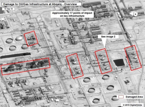 Theo các nguồn tin, đã có ít nhất 19 tên lửa hành trình và khoảng 10 máy bay không người lái tham gia thực hiện vụ tấn công vào các nhà máy lọc dầu ở phía tây Ả Rập Xê-út. Theo thống kê, các hệ thống phòng thủ tên lửa của Mỹ chỉ có thể bắn hạ 2 tên lửa và 4 máy bay không người lái, 17 tên lửa hành trình còn lại đã bắn trúng mục tiêu.
