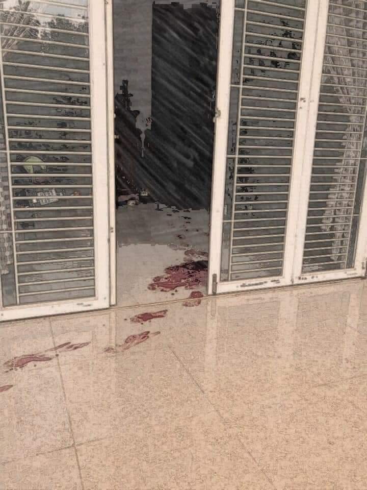 Vết máu 2 nạn nhân vẫn còn loang lổ trên sàn nhà. Ảnh: V.T