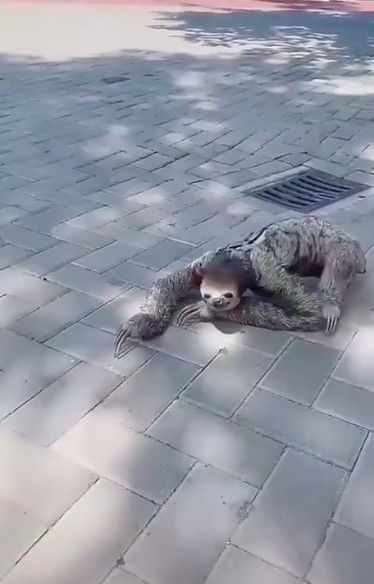 Một hình ảnh của một 'sinh vật' nhìn từ xa khá giống Tarzan đầy lông lá bò giữa đường, nhưng nhìn kĩ sẽ thấy đây là chú lười phiên bản hơi kỳ cục...khiến đa số người xem hẳn đã có ấn tượng với chú lười chậm chạp vô cùng đáng yêu.