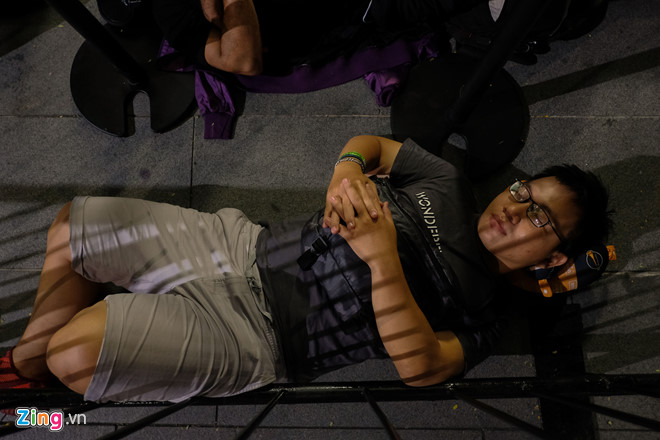 Tại đầu cầu Singapore, phóng viên Xuân Tiến cho biết bên trong Apple Store một tấm vải đen bí ẩn được treo lên. Phía ngoài, người Việt xếp hàng mua iPhone ngả lưng bất cứ nơi nào có thể vì quá mệt mỏi sau ngày dài chờ đợi iPhone.