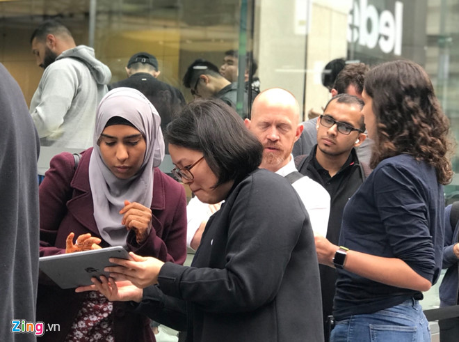 Ở đây người dùng có thể mua trực tiếp tại cửa hàng, cũng có người pre-order và xếp hàng lấy máy. Với hàng người mua trực tiếp, nhân viên Apple sẽ ra để lấy đơn hàng trước, sau đó người mua đợi vào Apple Store nhận máy.