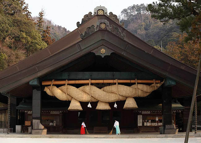 Đây là đền thờ thần Izumo Taisha, được tìm thấy ở khu vực nông thôn của thành phố Izumo. Được coi là ngôi đền tồn tại lâu đời nhất ở Nhật Bản, ngôi đền được xây dựng vào những năm 700. Trên khuôn viên đền thờ bạn sẽ tìm thấy cổng torii cao chót vót, dẫn vào khu vực chính. Từ đó, bạn sẽ đi theo con đường mòn trước khi đến sảnh chính, tòa nhà điện thờ cao nhất Nhật Bản.