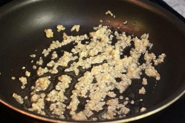 - Bước 1: Phi thơm 1 thìa dầu ăn với ½ phần hành tỏi băm nhuyễn, vặn lửa nhỏ vừa rồi cho thịt heo nạc băm vào xào đều, khi thấy thịt băm vừa chín tới, bạn cho tiếp tôm đã băm nhỏ vào xào chung. Khi thấy tôm, thịt băm đã chín tới, bạn trút ra đĩa, để riêng.