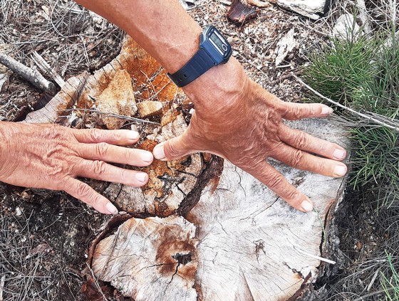 Gốc cây dương cổ thụ bị cưa phẳng. Ảnh: NGỌC OAI