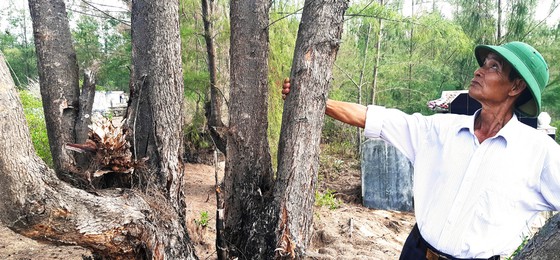 Theo ghi nhận của phóng viên Báo SGGP tại hiện trường, cả khu rừng giữ chức năng phòng hộ rộng bạt ngàn giờ bị đốt cháy, ám khói loang lổ giữa vùng hoang mạc cát. Ước tính cả trăm ngàn cây dương cổ thụ, đường kính từ 10cm - 50cm (5 đến 40 năm tuổi), có cây đường kính ở gốc lên đến 80cm bị cưa phẳng.