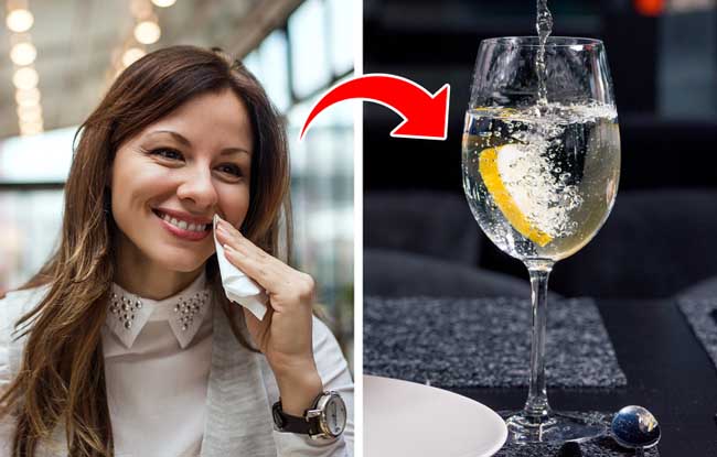 5. Ngậm miệng bằng khăn ăn trước khi uống