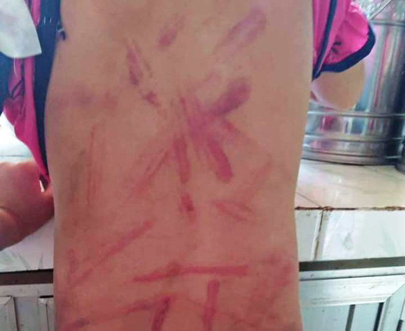 Trước đó, hình ảnh một cháu bé với nhiều vết lằn, bầm tím khắp cơ thể đã lan truyền trên mạng xã hội facebook, khiến dư luận bức xúc.