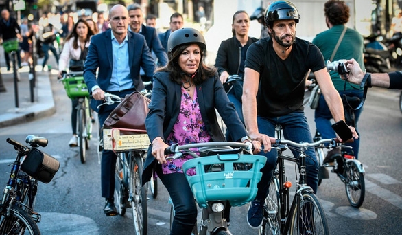 Thị trưởng Paris, bà Anne Hidalgo (giữa), luôn cố gắng mang lại h́nh ảnh đẹp về thủ đô nước Pháp, nhưng Paris vẫn bị phê phán về nhiều vấn đề, trong đó có vệ sinh công cộng - Ảnh: AFP