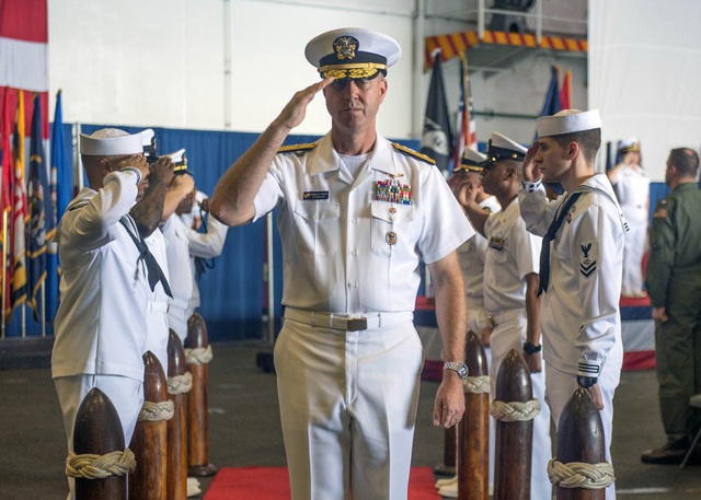Hải quân Mỹ cho biết, lễ bàn giao quyền chỉ huy nhóm tàu chiến lớn nhất của lực lượng đã được diễn ra trên tàu USS Ronald Reagan ngày 29/9 khi nó đang ở trên Biển Đông.