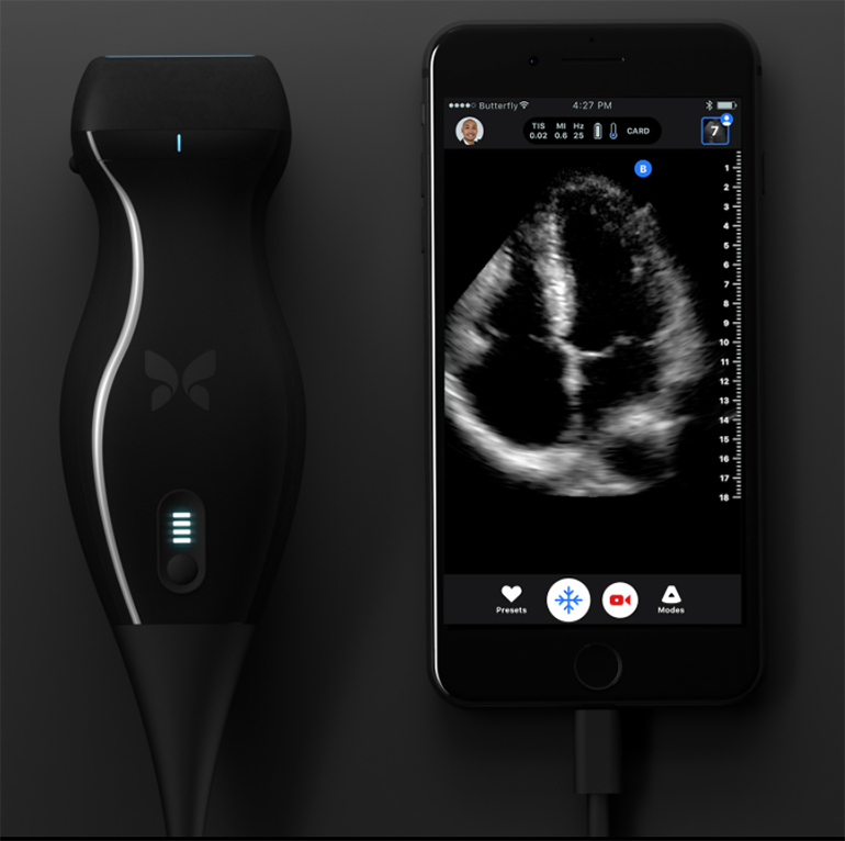 Các nhà khoa học thuộc Công ty Butterfly Network ở bang Connecticut (Mỹ) vừa giới thiệu sản phẩm Butterfly iQ, một thiết bị siêu âm nhỏ gọn kết hợp với ứng dụng trên điện thoại thông minh.