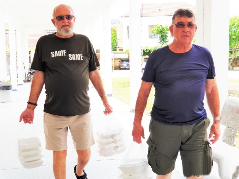 Ông Ken (trái) cũng thường xuyên rủ thêm những người bạn từ Úc về Hội An làm thiện nguyện giúp bệnh nhân và người nghèo.