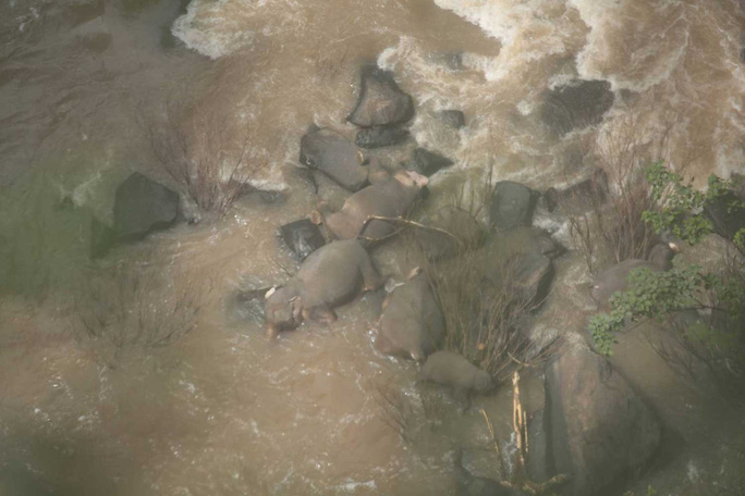 Nỗ lực cứu 2 con voi khác bị rơi xuống thác vẫn đang diễn ra.