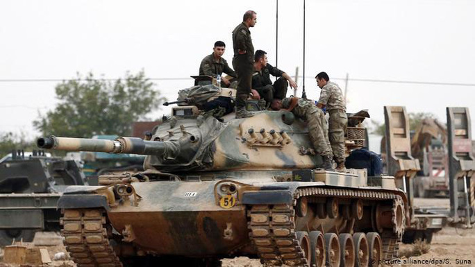 Xe tăng Thổ Nhĩ Kỳ trên biên giới với Syria. Ảnh: DPA