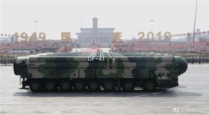 Tên lửa đạn đạo xuyên lục địa nhiên liệu rắn DF-41 đã bắt đầu được phát triển vào cuối những năm 1980. Đây là loại tên lửa mới về cơ bản đối với Trung Quốc: trọng lượng phóng lên tới 80 tấn, mỗi tên lửa có thể mang theo 10 đầu đạn hạt nhân. Do đó, sự hiện diện của 16 tổ hợp được giới thiệu tại cuộc diễu binh cho thấy rằng, trong kho vũ khí hạt nhân của Trung Quốc có thêm 160 đầu đạn, bổ sung cho khoảng 300 đầu đạn hạt nhân đã có sẵn.