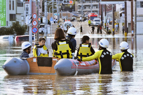 Người dân Nhật Bản mắc kẹt trong lũ. Nhật Bản nhanh chóng huy động hàng chục nghìn người, bao gồm binh sĩ và lực lượng khác, để giải cứu người dân. Dưới đây là hình ảnh được ghi lại.
