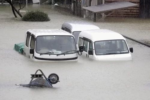 Bão Hagibis đổ bộ lên đảo Honshu của Nhật Bản tối 12/10. Đây được đánh giá là cơn bão mạnh nhất tấn công Tokyo kể từ năm 1958, gây mưa lớn trên diện rộng tại Nhật Bản. Đê sông Chikuma đoạn chảy qua tỉnh Nagano bị vỡ, khiến nước lũ dâng cao nhấn chìm nhiều ngôi nhà. Trực thăng quân sự được huy động để giải cứu người mắc kẹt trong những ngôi nhà gần sông.
