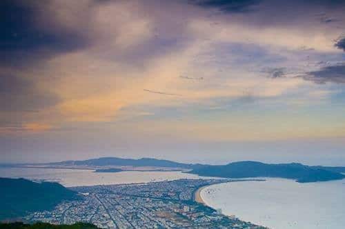 Quy Nhơn chụp từ núi Vũng Chua. Bên trái là đầm Thị Nại, dải đất phía xa là bán đảo Phương Mai. (Ảnh từ nghiencuulichsu.com)