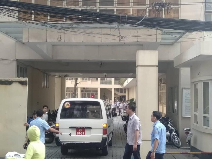 Theo quan sát của PV Kiến Thức, sáng 17/10, không lâu sau khi xuất hiện thông tin về vụ việc, lúc 9h10 chiếc xe cứu thương tiến vào khu vực bên trong trụ sở Bộ GD-ĐT. Lúc 9h23 chiếc xe quay ra.