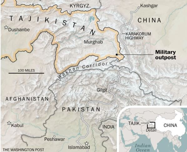 Trong ít nhất 3 năm, lính Trung Quốc đã âm thầm theo dõi điểm thắt cổ chai ở Tajikistan, chỉ cách biên giới phía tây Trung Quốc một quãng ngắn, căn cứ vào các cuộc phỏng vấn mà báo Mỹ Washington Post thực hiện, các phân tích hình ảnh vệ tinh, các tấm ảnh chụp và quan sát trực tiếp của phóng viên.
