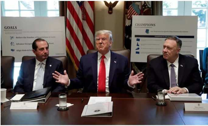 Tổng thống Donald Trump phát biểu trong cuộc nội các hôm 21-10. Ảnh: EPA