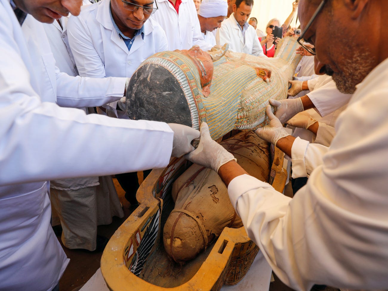 Các quan tài cổ được mở nắp vào hôm 19/10, một tuần sau khi chúng được khai quật tại nghĩa địa Asasif của Ai Cập, nơi thành phố cổ Thebes từng tồn tại.