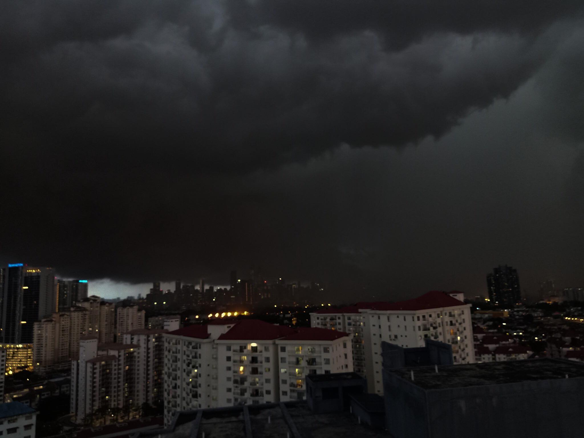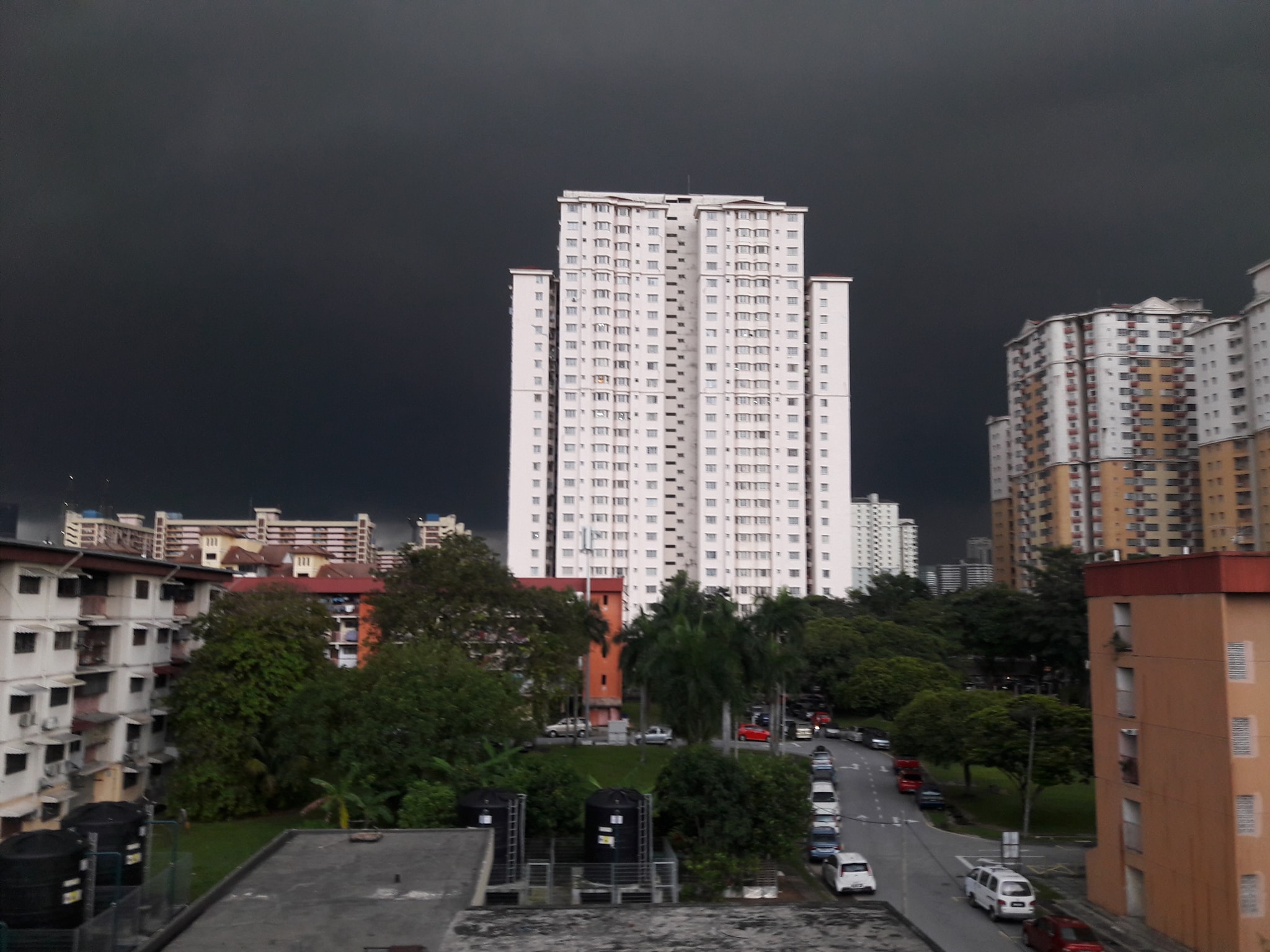 Đây là bầu trời Kuala Lumpur. Bầu trời chuyển sang màu đen tuyền do gió mùa đông bắc ập về gây ra cơn giông lớn và mưa to.