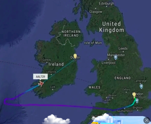 Máy bay phải hạ cánh khẩn cấp tại Dublin, Ireland khi đang trên đường tới Mỹ. Ảnh: Sun.