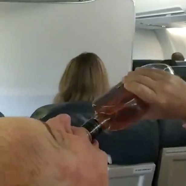 Một hành khách tu ừng ực rượu whiskey...