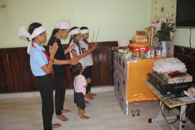 Trên bàn thờ, làn hương cháy nghi ngút, 4 đứa trẻ nheo nhóc đang còn đội chiếc khăn tang càng khiến lòng chúng tôi cũng chảy nước mắt theo. Rồi đây, tương lai, hy vọng của lũ trẻ sẽ đi đâu về đâu. Nói chi đầu xa, bữa cơm hàng ngày người trẻ còn lo nỗi…nữa là chuyện học.
